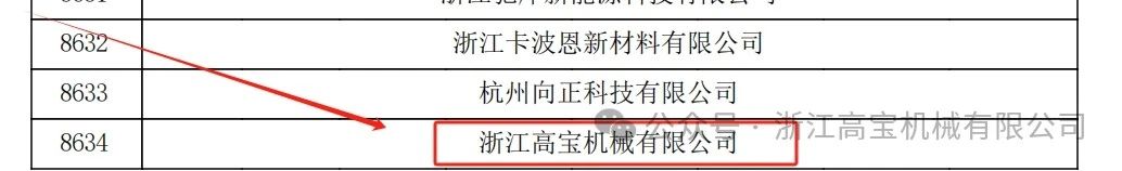 浙江高寶機(jī)械有限公司通過(guò)省認(rèn)定機(jī)構(gòu)2024年認(rèn)定報(bào)備的高新技術(shù)企業(yè)